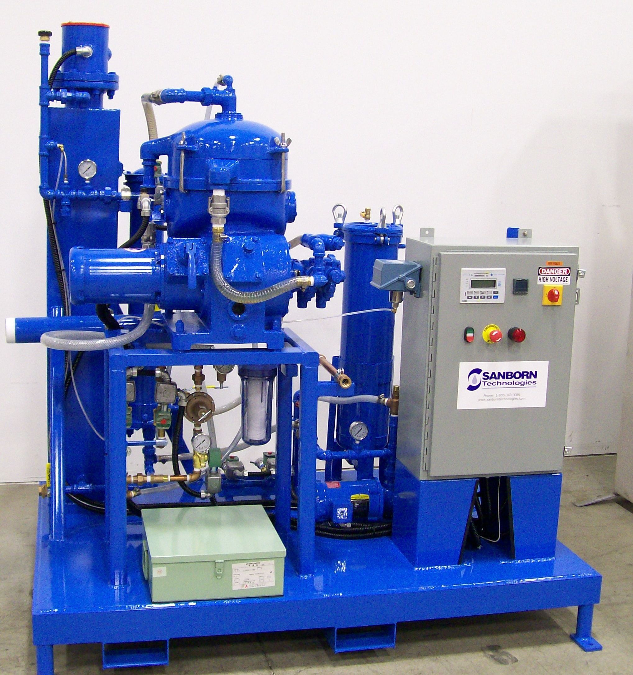 The Mitsubishi self-discharging centrifuge will undergo a period self-cleaning mode where the captured solids ae ejected and the centrifuge disc stack is subjected to a clean water flush prior to being placed back on-line. The entire centrifuge processing and self-discharging process is fully automated to minimize operator attention in as much as possible. The separated tramp oil is directed to a 55-gallon drum for further processing or reclamation by a used oil recycling service.