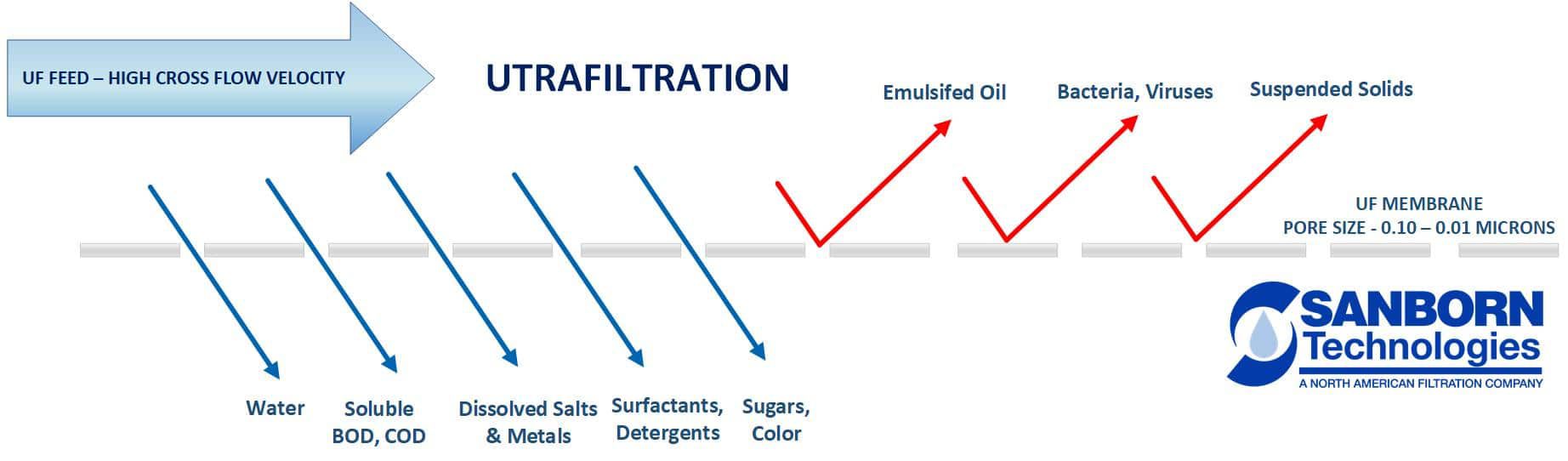 Sanborn Technologies Ultrafiltration Systems are available in either standard system designs up to 20,000 GPD. We can also supply ultrafiltration systems that are custom engineered and designed to meet larger process capacities in various system configurations to meet the application demands. All of our Ultrafiltration Systems are engineered designed to meet the harsh environment demands of processing difficult and problematic oily wastewater streams and a myriad of other streams as well.